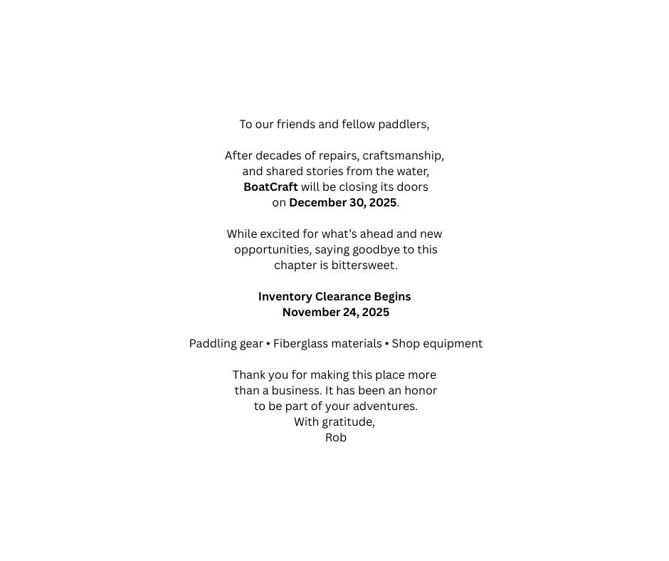 Huge Savings on almost everything in-store. Paddling and Marine Maintenance Items.